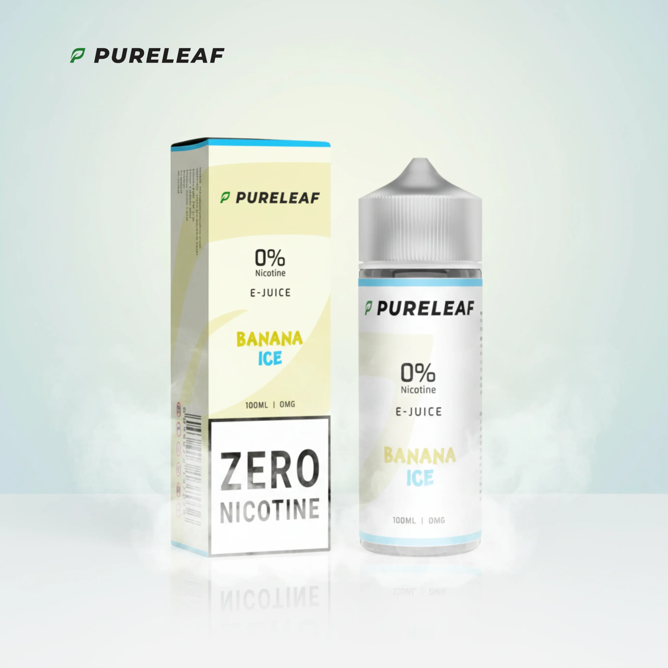 Pureleaf Signature Banana Ice 100ml Nicotine-Free E-Liquid. Smooth, creamy, and refreshing, designed for sub-ohm devices with dense vapour and UK-compliant packaging.